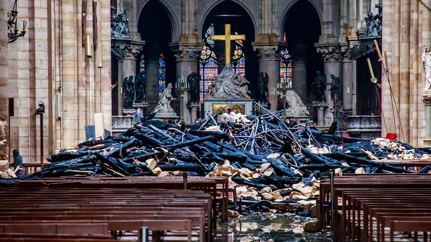 I remember five years ago when Notre-Dame Cathedral in Paris shockingly went up into flames. It was the beginning of Holy Week 2019 and, naturally, every Easter homily anyone preached that year had to do with the Notre-Dame on fire. You may not have been old enough to know this back then, but the summer of 2018 through 2019 was a difficult stretch for the Church, with yet another round of clergy scandals emerging. Everyone saw the obvious symbolism in the cathedral burning while the gold cross behind the altar stood unharmed and glistened amidst the wreckage. That was an Easter homily that wrote itself.